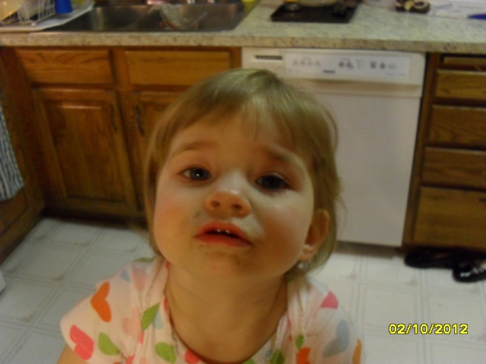 It was time to cut hair this weekend. Little K has not had one single hair cut ever. It was not easy. She did not want to stay still at all. But those bangs needed it! So with a little distraction from dad I was able to get the scissors at her and trim across the front. That's all, but, boy, does it look a lot better. And I'm not having to constantly swipe her hair out of her face.